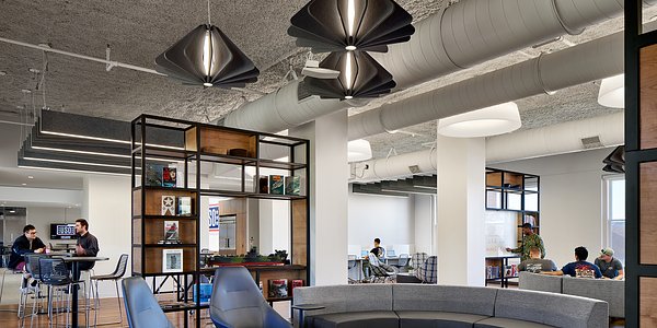 Combination of TUBIE⢠luminaire and sound absorbing 9mm acoustic fins in 25 colors
