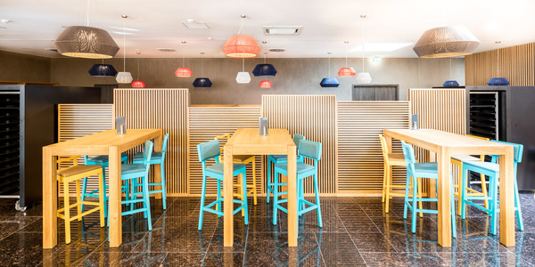 Banyo is a family of pendant, portable and surface lamps with a hand-made braided cord shade for lighting effects. It creates charming lighting effects through its hand-made braided cord lampshade around a metal frame. Banyo is offered in suspension, surface wall mount and portable versions that are available in a wide range of sizes and colors. The textured rope detail lends the fixture to a coastal design style, and would be a great option for bedside lighting as a wall-mounted lamp in residential or sea-side hospitality settings.